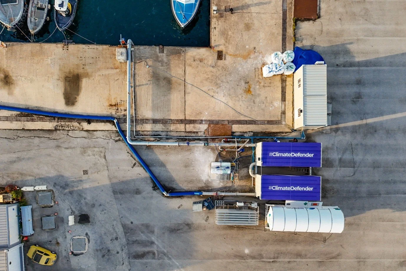 Image: This pilot plant uses renewable energy to store carbon permanently in the ocean while helping to counteract acidification. Photo courtesy of Limenet.